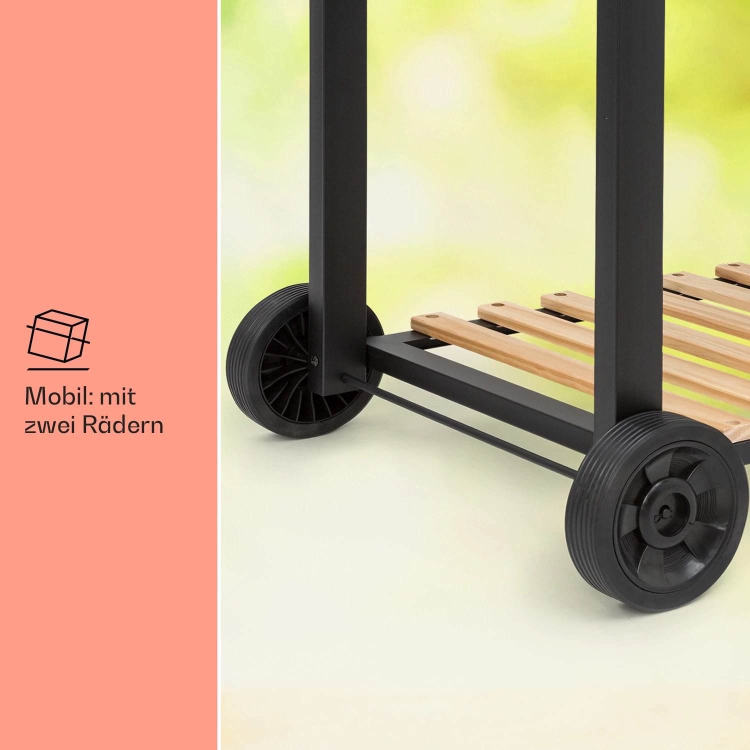 - Ablage aus Echtholz zwischen den Standfüßen für Holzkohle oder Grillequipment