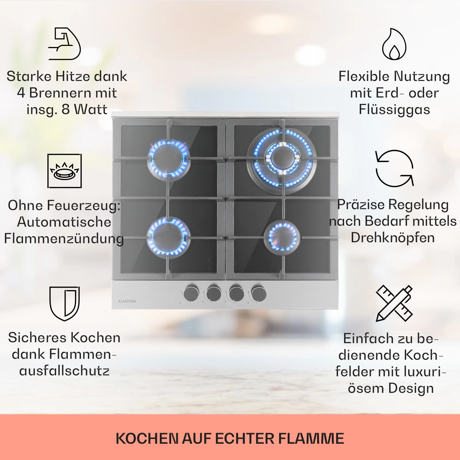 Alchemist 4 Zonen Gaskochfeld Aluminium-Brenner Glaskeramik Schwarz