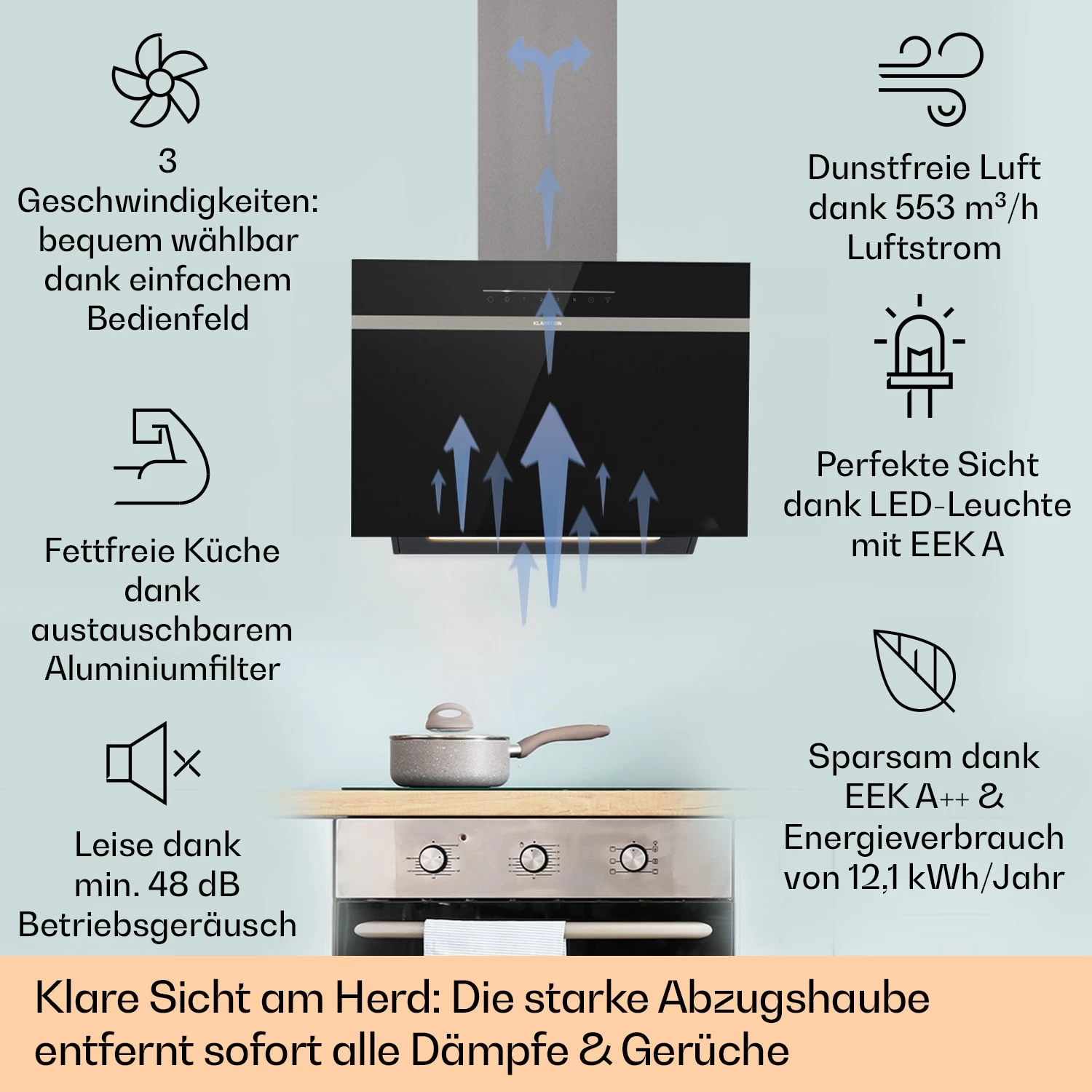 Freie Sicht in der Küche: Mit der Klarstein Ava Wandabzugshaube sind Essensgerüche, Dampf und Fettrückstände schnell verschwunden.