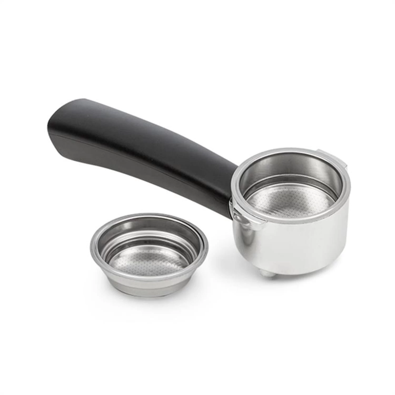 Wie das Original ist auch der Ersatz-Siebträger mit zwei Filtereinsätzen aus Edelstahl ausgestattet, sodass man die Wahl problemlos einen oder zwei Löffel Kaffeepulver zum Aufbrühen von Espresso und anderen Kaffeespezialitäten nutzen kann.