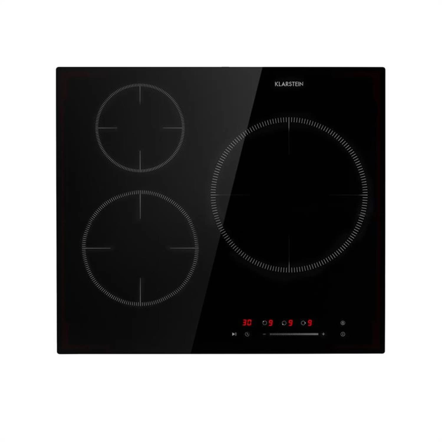 Drei Kochflächen für den Genuss bietet das Klarstein Delicatessa 3 Einbaukochfeld bei einer Gesamtleistung von bis zu 5800 W, die sich mit 2300, 2000 und 1500 Watt auf die einzelnen Kochflächen verteilen und die Inhalte von Töpfen und Pfannen in Spitzenzeiten zum Kochen bringen. Besonders praktisch ist dabei die extra große Paella-Zone mit 28 cm Durchmesser, auf der natürlich nicht nur extra große Pfannengerichte zubereitet werden können, sondern problemlos auch das Chilli-Topf für die nächste Houseparty oder der Einkochtopf ihren Platz finden. Mit maximaler Flexibilität passen sich die Kochfelder dank Topferkennung an die Größe der darauf gesetzten Töpfe, Pfannen oder Kasserolen an. Damit verbraucht die Delicatessa 3 zum einen wirklich nur die Energie, die für den Topf passend ist und ermöglicht zum anderen die Nutzung fast jeder Topf- oder Pfannengröße. Alle Felder lassen sich separat in ihrer Leistung regeln. Das passiert beim Klarstein Delicatessa 3 Glaskeramik-Kochfeld unkompliziert mit einem integrierten SenseControl Touch-Panel mit Digitaldisplay und Touch-to-slide-Regler zur Leistungskontrolle. So durchbrechen weder Knöpfe noch Regler die Oberfläche der Küchenzeile. Neben der Leistung kann für jedes Kochfeld ein bis zu 99-minütiger Timer programmiert werden, der entweder nach Ablauf der eingestellten Zeit die Kochplatte abschaltet oder ein akustisches Signal ertönen lässt.