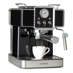 Der Gusto Classico Espressomaker von Klarstein verzaubert nicht nur mit kraftvoll aromatischem, frisch gebrühtem Kaffeegenuss deinen Gaumen – auch der Anblick ist ein wahrer Augenschmaus. Erlebe den verführerischen Duft, wenn die Siebträgermaschine in ausgefallenem Retro-Design mit 20 Bar Druck das volle Aroma des Kaffees entfesselt. Geeignet ist die Espressomaschine für gemahlenen Kaffee, wie auch für Kaffeepads.