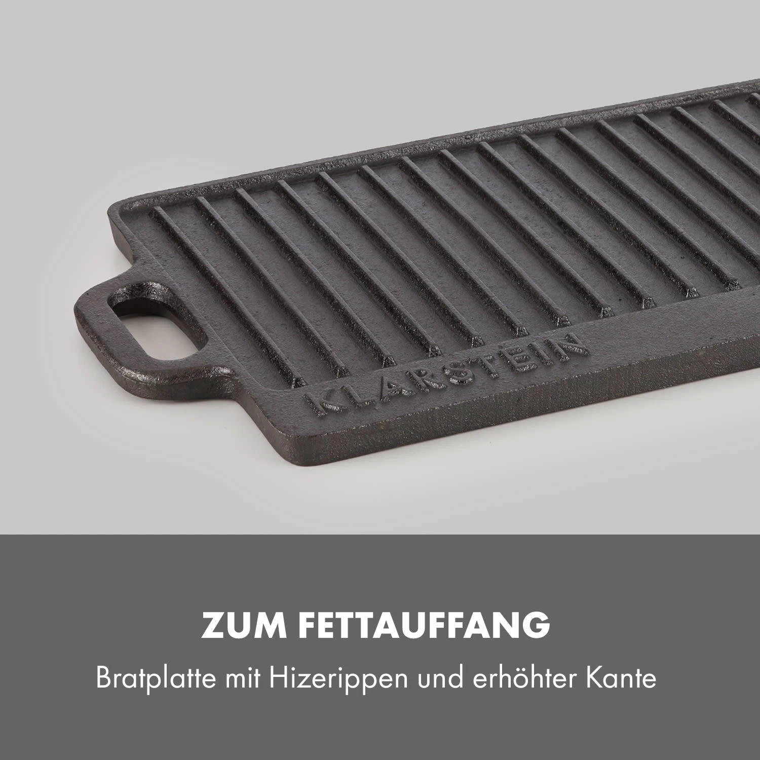 - Bratplatte mit Hitzerippen und erhöhter Kante zum Fettauffang