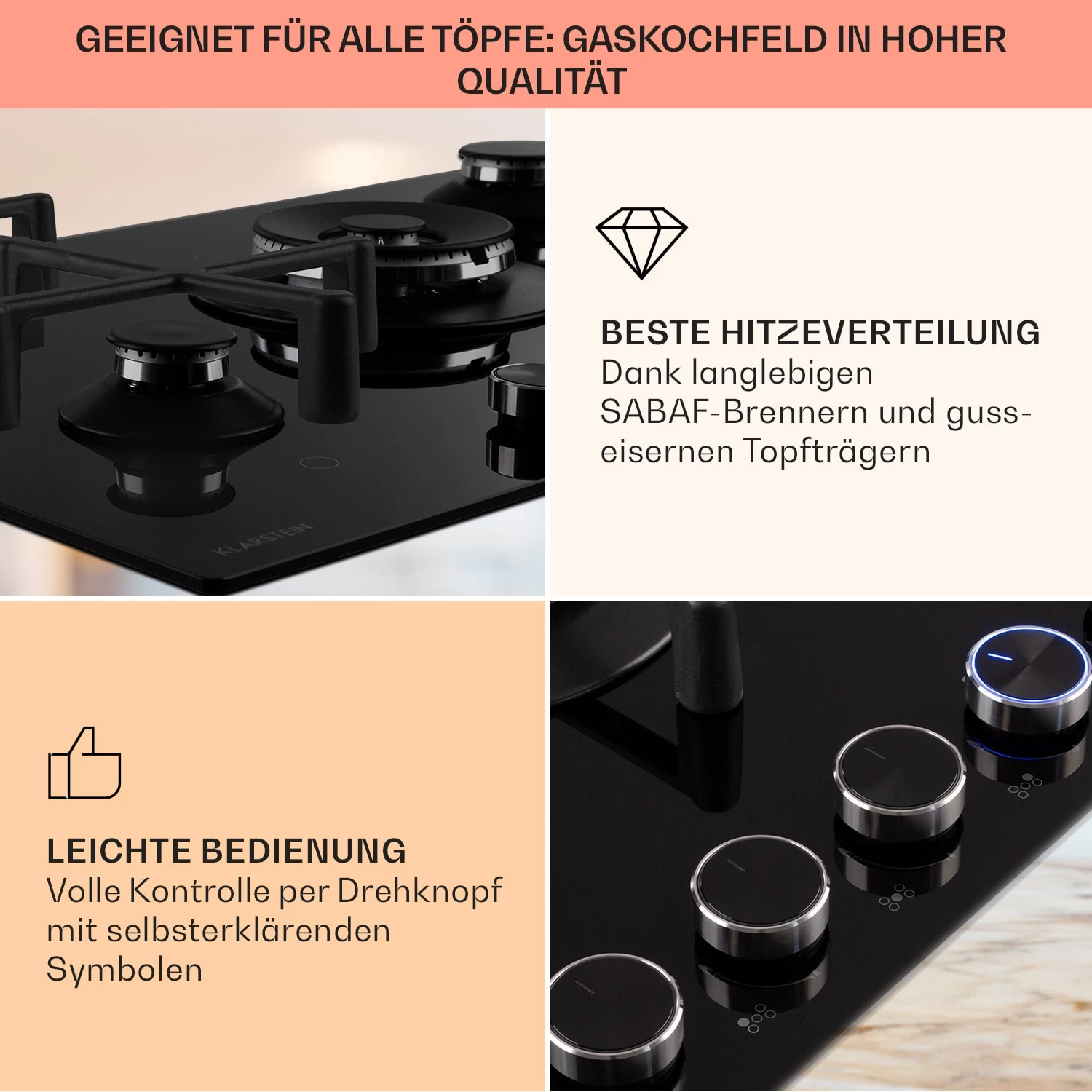 Illuminosa 5 Gaskochfeld 5-flammig Sabaf-Brenner Glaskeramik