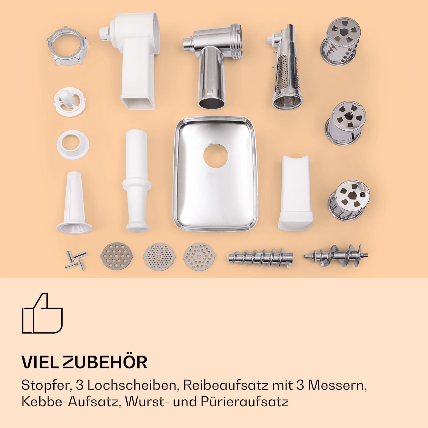 - elektrischer Fleischwolf mit vielfältigem Zubehör