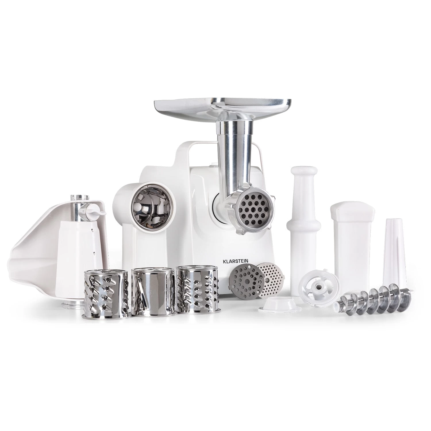 Wissen, was drin ist: Mit dem elektrischen Fleischwolf Mighty Mince von Klarstein kannst du allerlei Wurst- und Fleischspezialitäten selbst herstellen. Dies geht durch raffinierte Technik und die einfache und schnelle Befüllung von oben. Gib die entsprechenden Zutaten in die Trichterschale und schiebe sie mit dem beiliegenden Stopfer nach und nach ins Einfüllrohr, sodass sie im Kopf von Messer und Lochscheibe geformt werden. So gelingt nicht nur feines Hackfleisch in der heimischen Küche – du kannst dank dem vielfältigen Zubehör viele weitere Köstlichkeiten vor- und zubereiten. Mit dem Reibeaufsatz mit 3 verschiedenen Messern kannst du ganz unkompliziert auch Gemüse reiben.