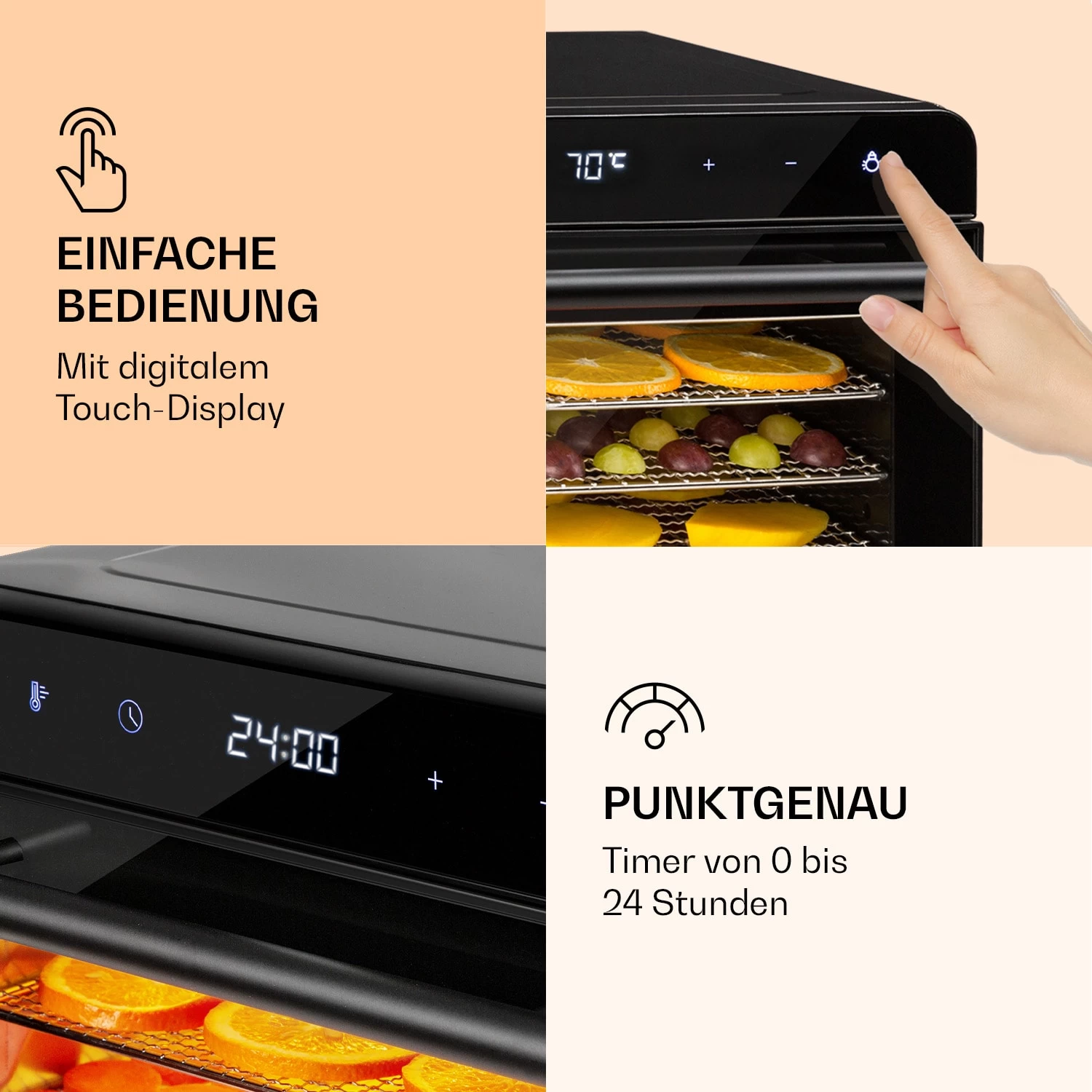 Mit seiner starken Leistung und einem hochwertigen Gehäuse aus Edelstahl sorgt der Shaftesbury Dörrautomat von Klarstein zeitgleich für eine vitaminreiche, gesunde Ernährung und ein elegantes Küchenambiente.