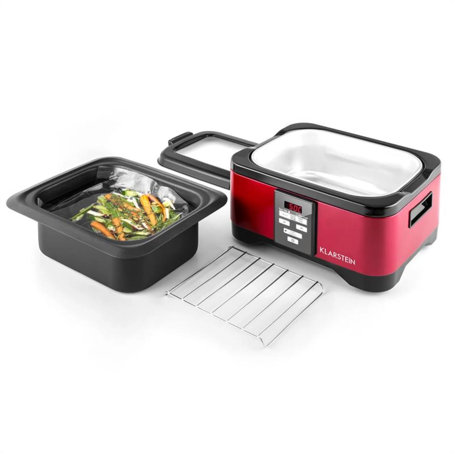 Am Ende eines langen Arbeitstages noch eine warme und gesunde Mahlzeit kochen? Kein Problem, denn die in Vakuumbeuteln vorbereiteten Gerichte werden per Knopfdruck und auf den Garpunkt genau im Tastemaker Sous-Vide Garer auf Niedrigtemperatur gekocht. Vitamine und Mineralien bleiben erhalten, Gemüse ist knackig und Fleisch besonders saftig. 550 Watt erwärmen das Wasser im 6 Liter großen Aluminium-Innentopf gleichmäßig auf Temperaturen von 40-90 °C. Gradgenau und auf die Minute – einmal die Temperatur und Garzeit programmiert, kocht der Klarstein Slow Cooker selbständig und sorgt dafür, dass die Temperatur während des gesamten Garzeitraumes konstant gehalten wird.