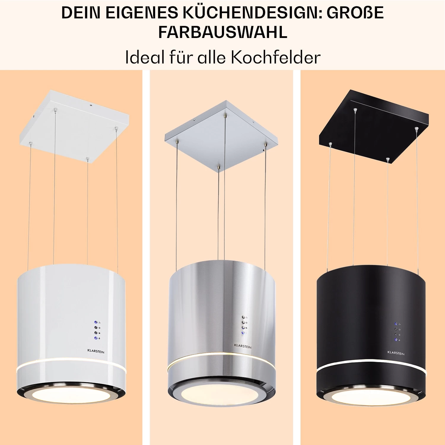 Die Zukunft der Dampfbeseitigung: Die Klarstein Tron Ambience Inselabzugshaube bringt futuristischen Glanz in die Küche und befreit die Luft von Dampf und Gerüchen.