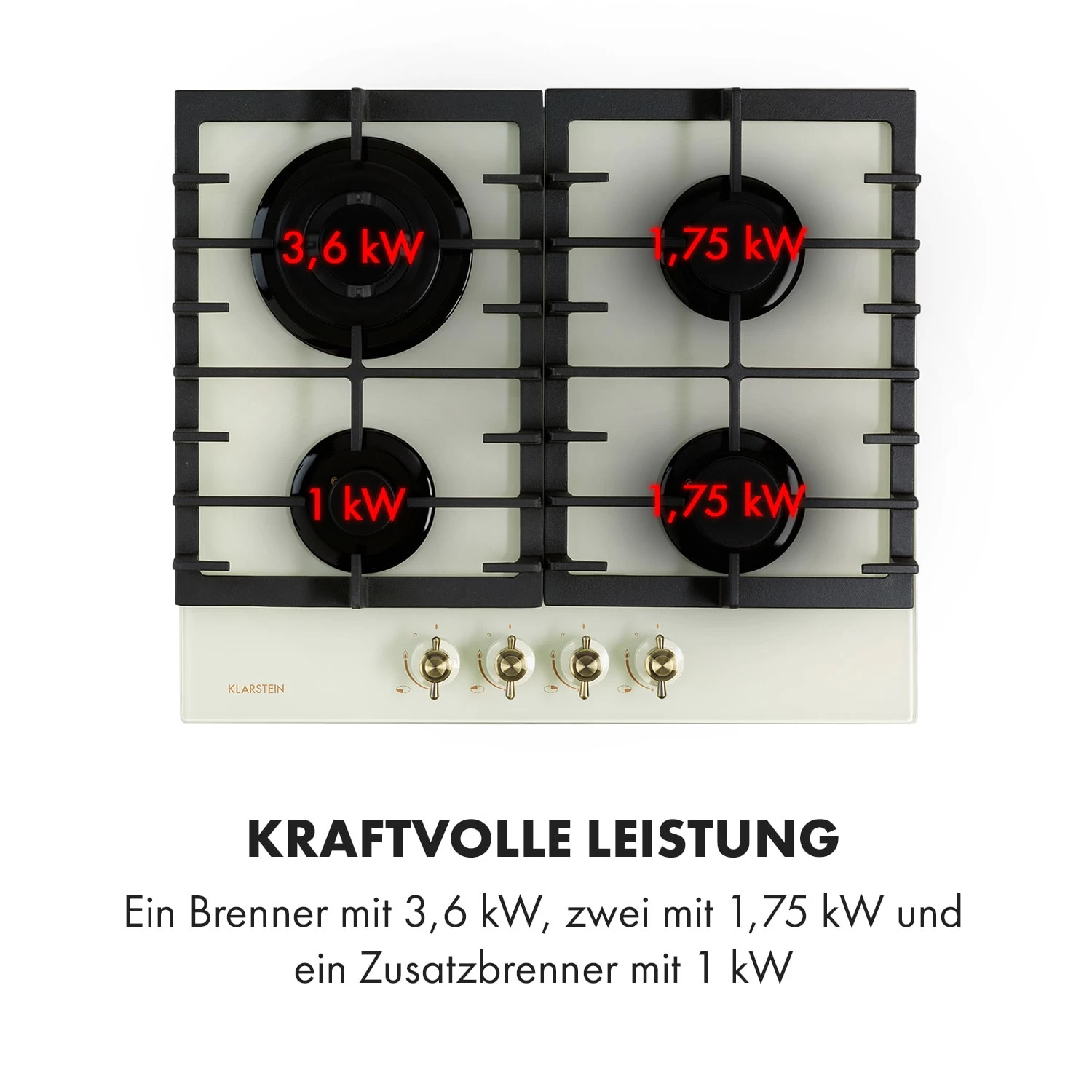 All hail the Queen! Das Klarstein Victoria 4 Zonen Gaskochfeld bringt nicht nur die umweltschonende Effizienz, eines wunderbar leicht zu kontrollierenden Gasherds in deine Küche. Es bereichert sie außerdem um den unvergleichlichen Retro-Look des britischen Empires auf der Blüte seiner Zeit.