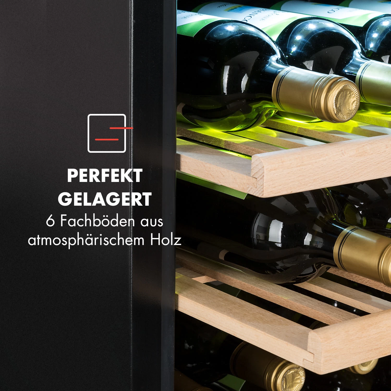 Der Weinkühlschrank Vinsider 41 Built-in Duo Onyx Edition von Klarstein interpretiert den klassischen Weinkeller neu: in bestechend elegantem Design aus Stahl, Glas und Holz. Dank der einschaltbaren LED-Innenbeleuchtung setzt er Weinvorräte jederzeit dezent und gekonnt in Szene!